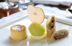 The cuisine celebrates the best of seasonal New Zealand produce, with an emphasis on fresh Otahuna estate-grown offerings. Dinner is a five-course chef’s degustation menu which changes daily, making use of the fresh produce sourced from the property's potager garden and orchard. Honest, uncluttered flavours, the finest local ingredients and elegantly restrained presentation are the hallmarks of the Otahuna table. At dinner, guests dine communally in the opulent formal dining room - ornate original wallpaper, a roaring fire and sparkling candlesticks exemplify the gracious living of the Victorian era. Alternatively, they may retreat to a private table for two in the sunken wine cellar, the intimate library, the drawing room turret, or a location of their choosing.